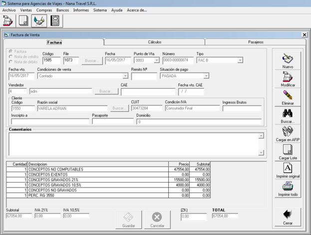 Facturación electrónica según normativa de AFIP.